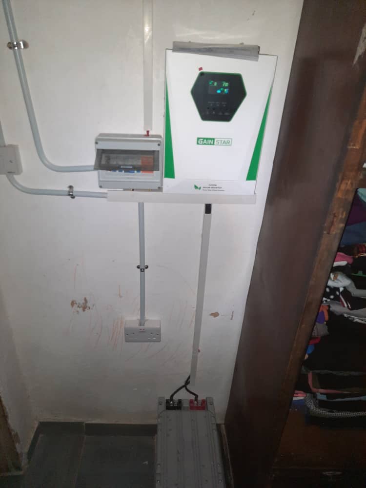 3kVA Package: 4×460W panels (1.84kW), 3kVA hybrid inverter, 5kWh lithium battery – ideal for lighting, Entertainment,Borehole Pump and fridge.